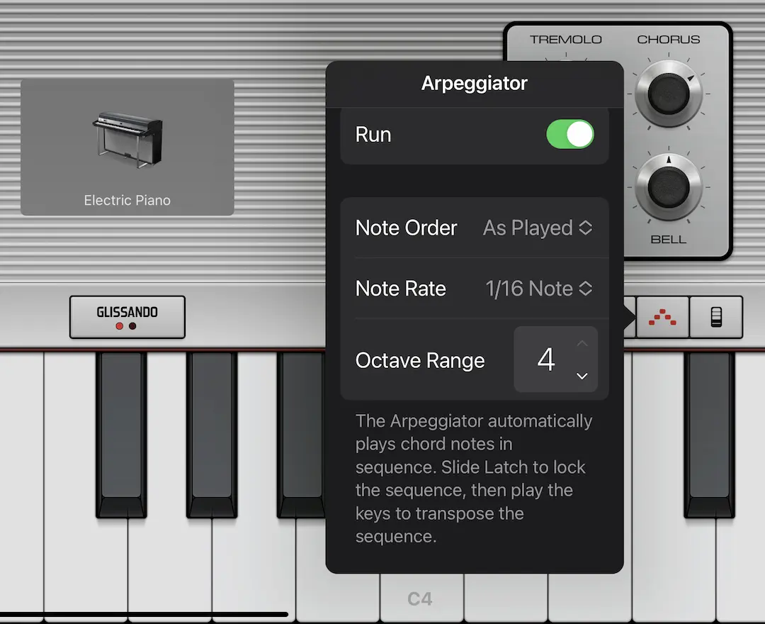 Nhấn vào nút Arpeggiator , sau đó bật Run.