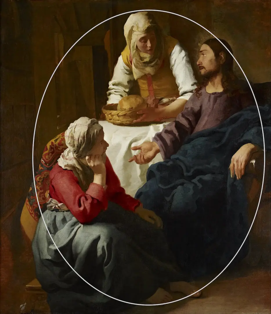 Chủ đề tranh nhấn mạnh nét đẹp về hình thể con người, và những hiện thực trong cuộc sống hơn là tôn giáo, thiên chúa. Quan niệm cuộc sống là thế giới vật chất phản ánh thế giới của chúa trời. Người nghệ sĩ cũng bắt đầu vận dụng các khối hình học để sáng tác và ổn định bố cục, ví dụ như hình tam giác, hình tròn trong các tuyệt tác dưới đây.