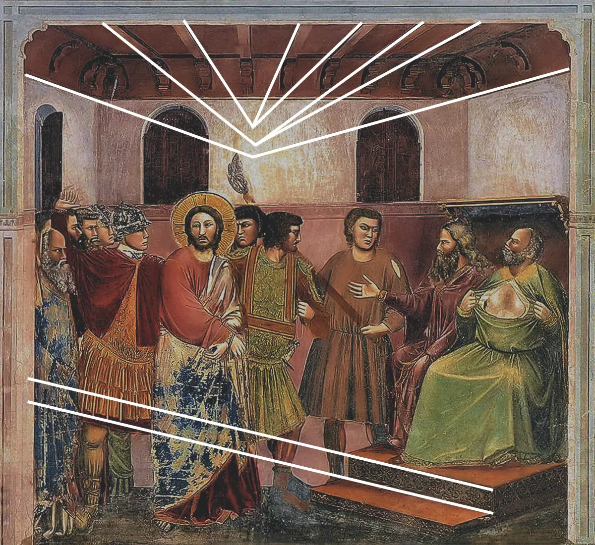 Các tác phẩm bố cục thực sự xuất hiện từ nghệ thuật Ý vào cuối TK13 trong bức tranh của Giotto và các họa sĩ khác. Trong đó có những gợi ý về hình ảnh 3 chiều trong không gian các khung kiến trúc của kỹ thuật vẽ phối cảnh sơ khai.