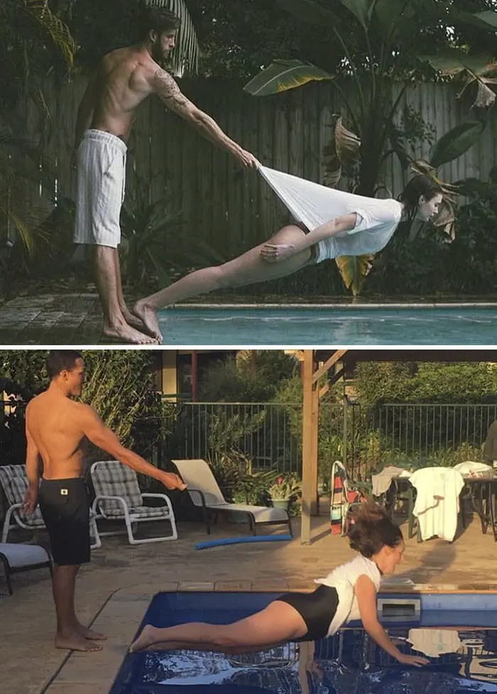 Bạn có tin là có ai đó có thể giữ chặt được chiếc áo thun trong khi bạn nghiêng sát xuống mặt hồ bơi? Câu trả lời là có thể nhưng là không dễ dàng vì người mẫu trong bức ảnh đã bị ướt mẹp vì cô ấy chắc chắn đã có vài lần rơi tỏm xuống hồ trước khi có bức ảnh đẹp như thế này.