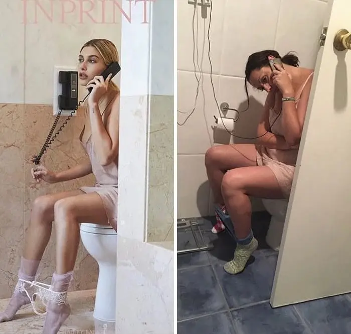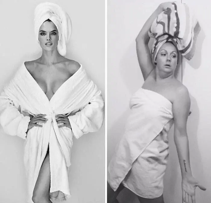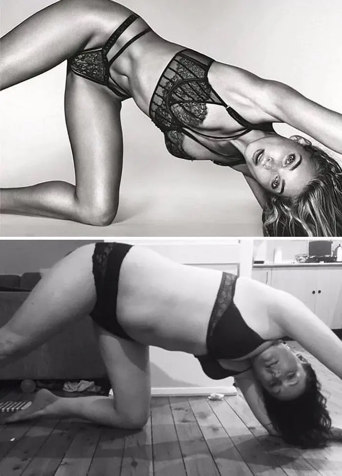 Một người phụ nữ có tên là Celeste Barber đã nảy ra ý tưởng tạo ra 1 loạt ảnh so sánh cũng dáng nhìn như thế, cũng trang phục như vậy, nhưng khi người bình thường thể hiện thì sẽ khác ra sao với các siêu sao người mẫu. Mục đích của loạt ảnh này là để vui thôi nhưng công nhận chúng thật sự là 1 thảm hoạ.. và đã đạt được 6,9 triệu lượt người theo dõi trên Instagram. Tất nhiên là để có những bức ảnh đẹp của người mẫu luôn luôn có sự can thiệp 1 cách tích cực (thậm chí là cật lực) của các chuyên viên hậu kỳ.