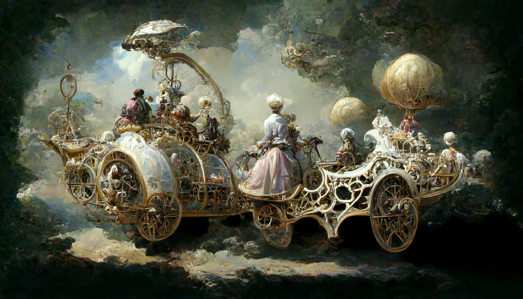 Mời bạn thưởng thức 44 tác phẩm về Phương tiện di chuyển đa vũ Trụ Rococo (means of transportation in a Rococo multiverse).