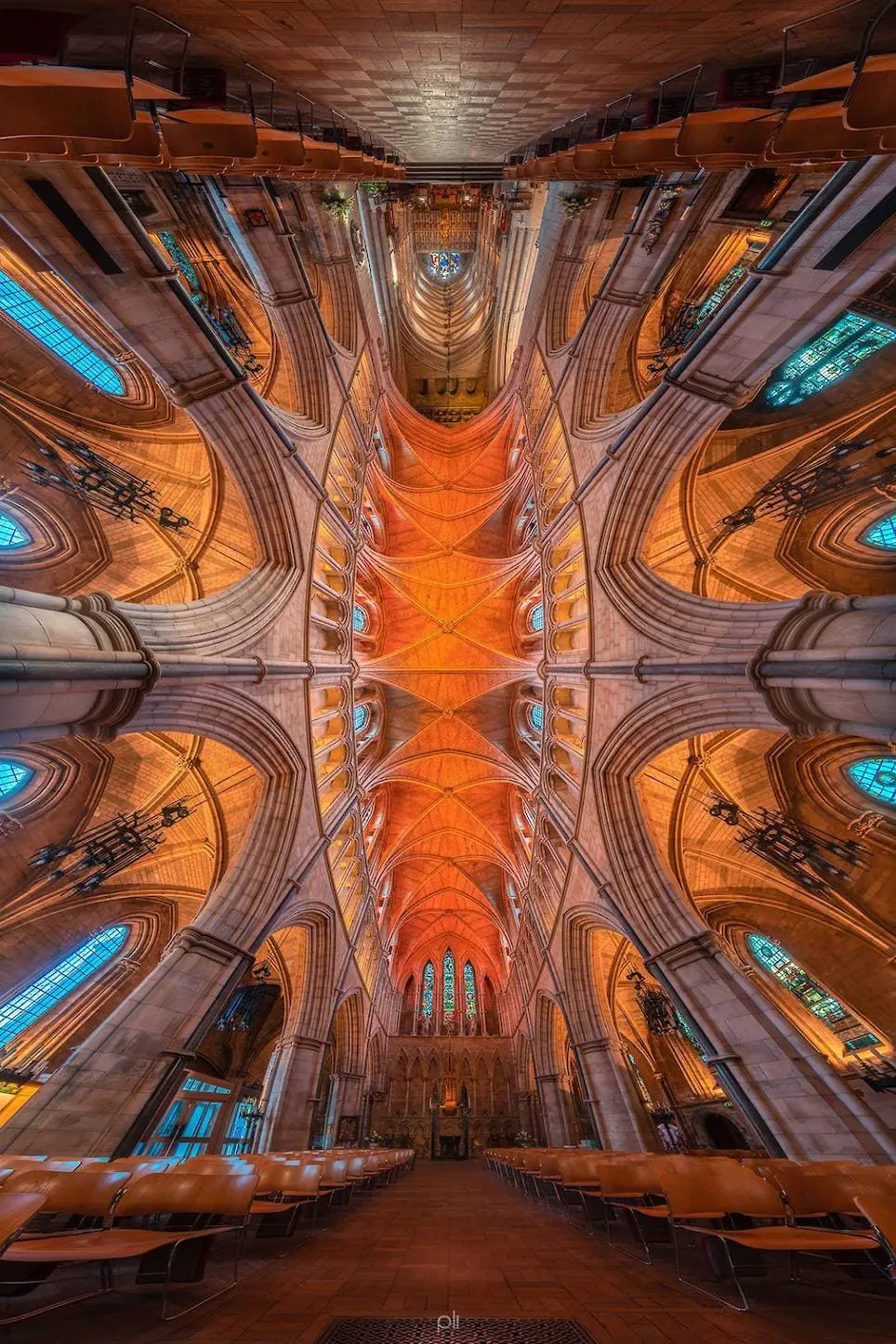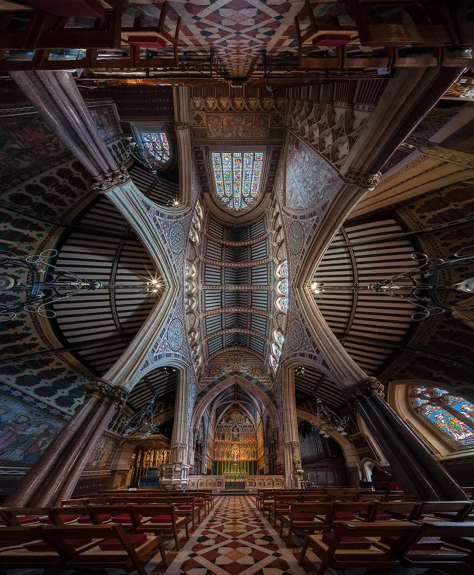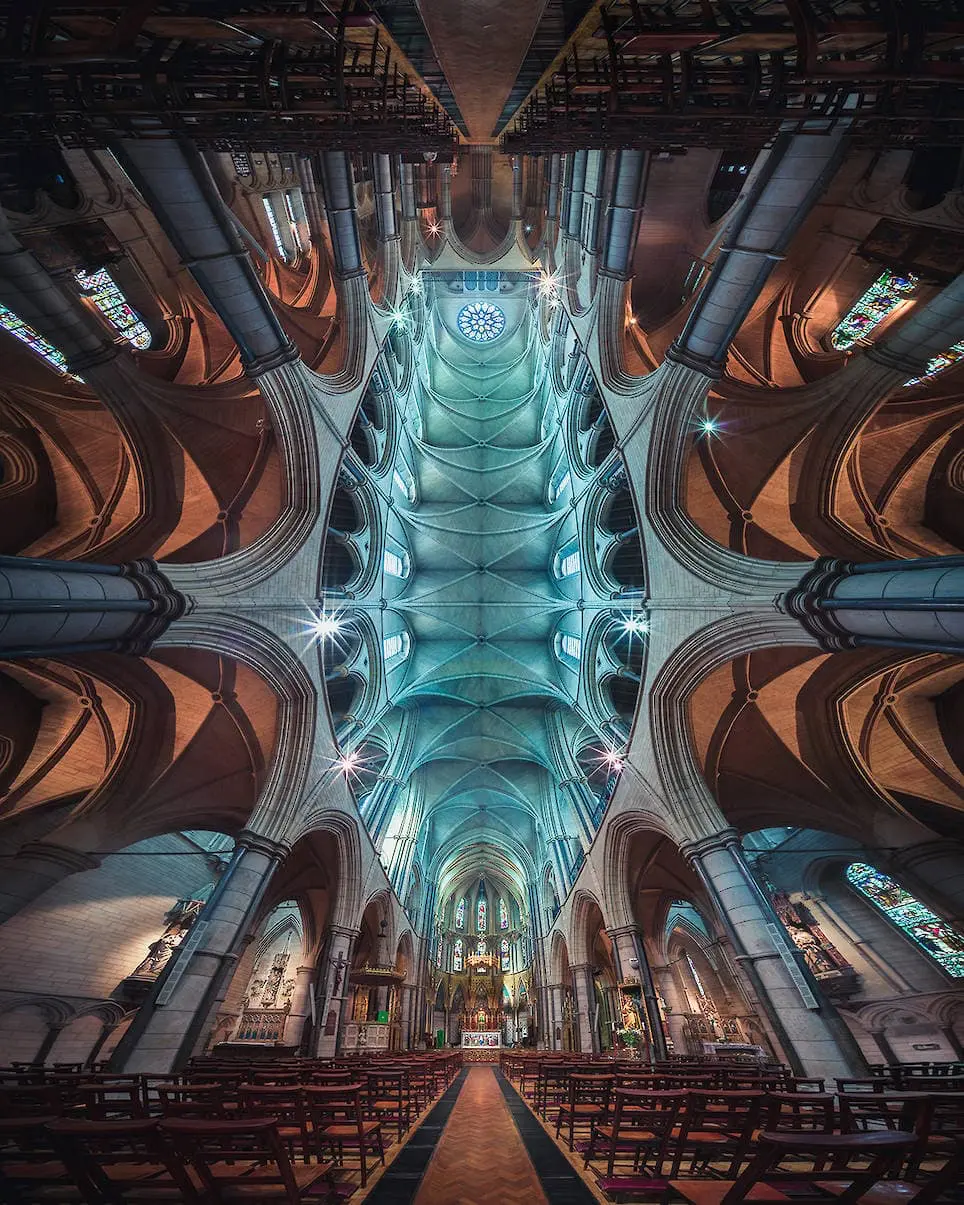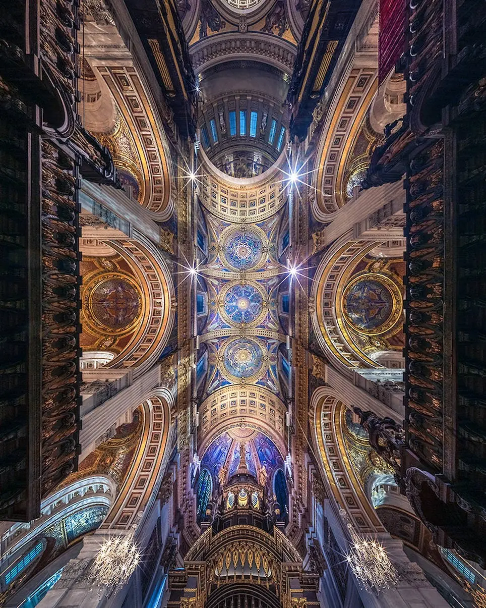 Các bức ảnh này chụp theo kiểu panorama theo chiều đứng để lấy được hết vẻ đẹp của lộng lẫy và mức độ hoành tráng của trần nhà các nhà thờ
