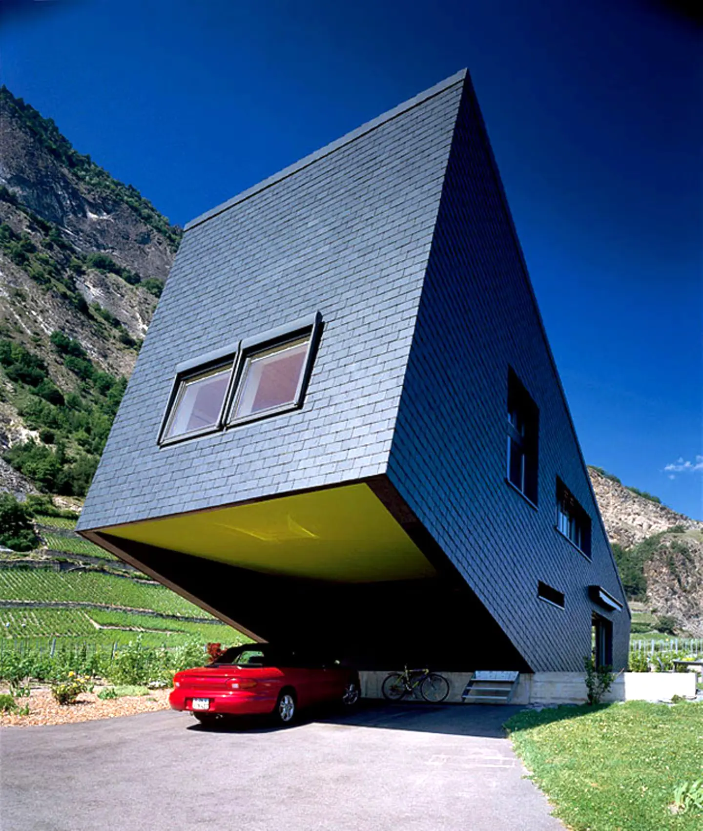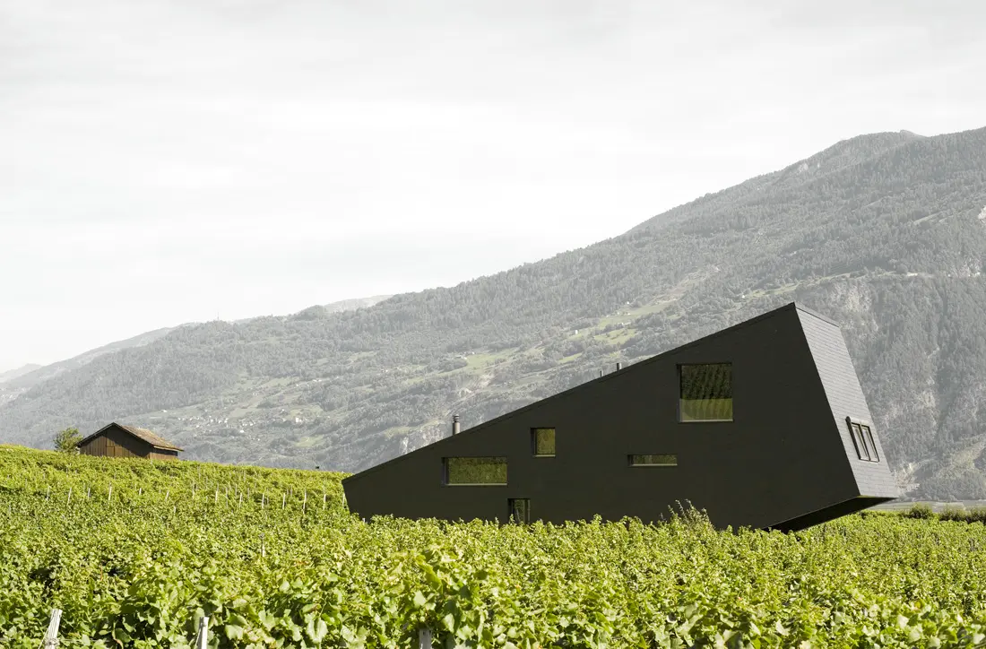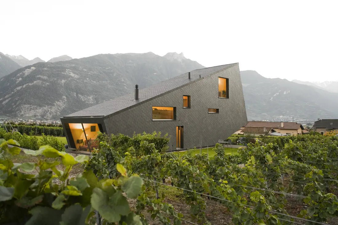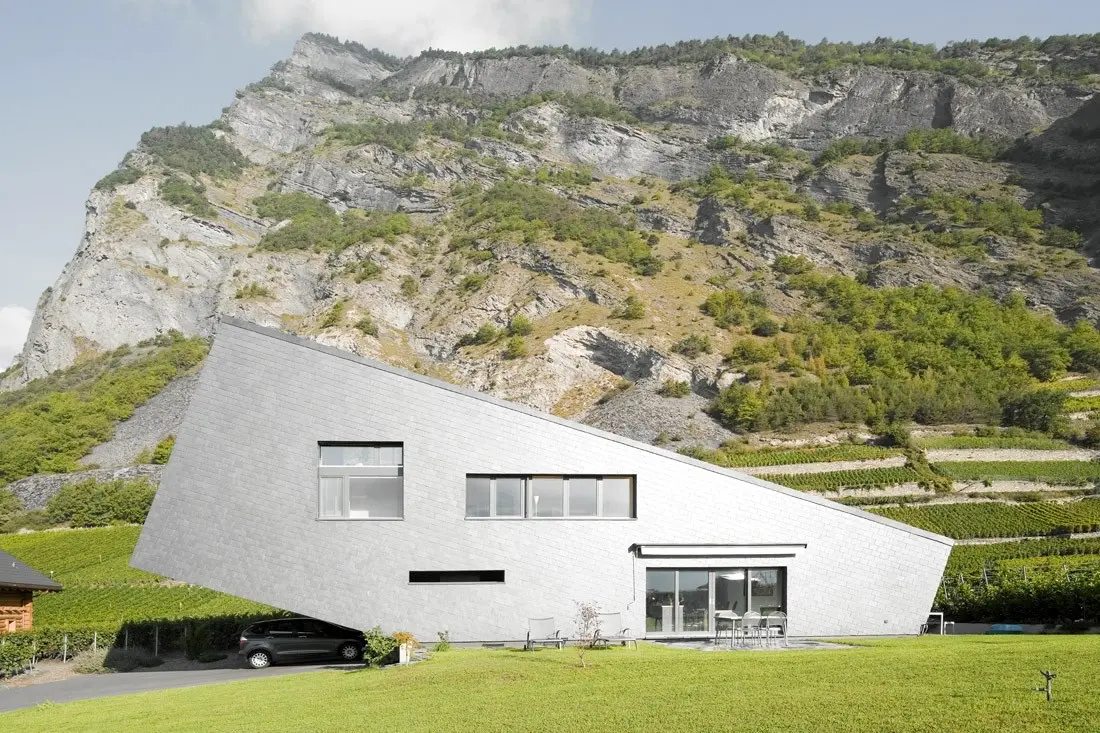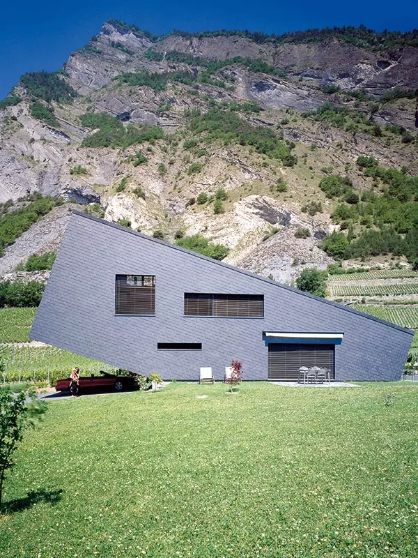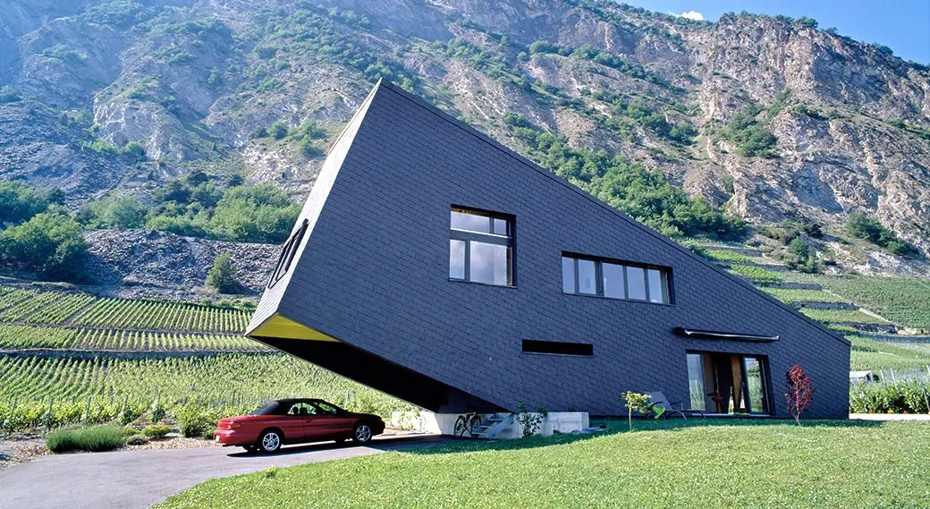 Ngôi nhà bằng gỗ được đặt trên núi Zufferey House, Thụy Sĩ. Nó được lấy cảm hứng từ ngọn núi, được xây dựng, cấu trúc nghiêng theo cách như nó đang chìm xuống hoặc ngoi lên từ mặt đất (nghĩ thể nào là tùy bạn).