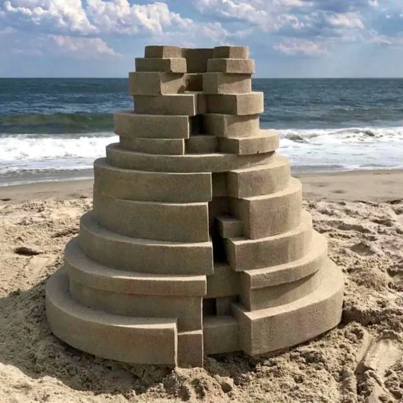 Dưới bàn tay của Calvin Seibert cát không còn là chất liệu mềm mục, dễ bể vụn: Các góc nhọn. Các mặt phẳng phẳng lì. Các bậc thang và những khoảng không gian hình học. Đây không phải là những lâu đài ma thuật thường thấy trên bãi biển, mà chúng giống như những tượng đài Brutalist thu nhỏ nhô lên từ bờ biển.