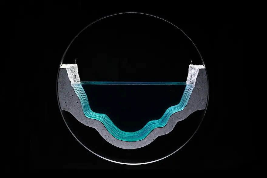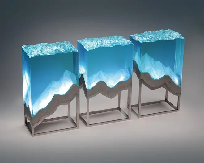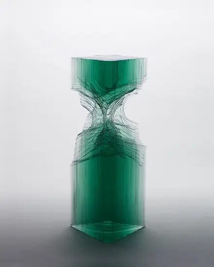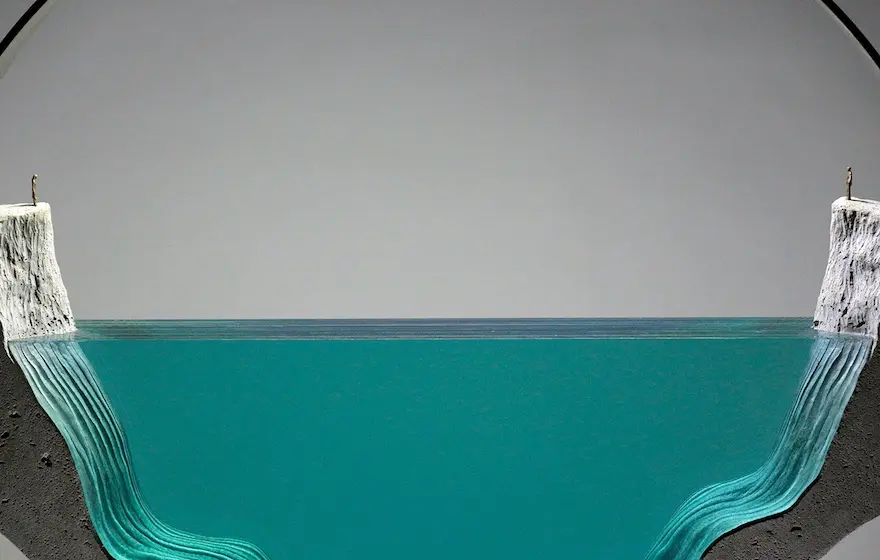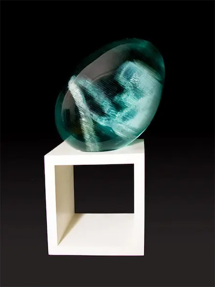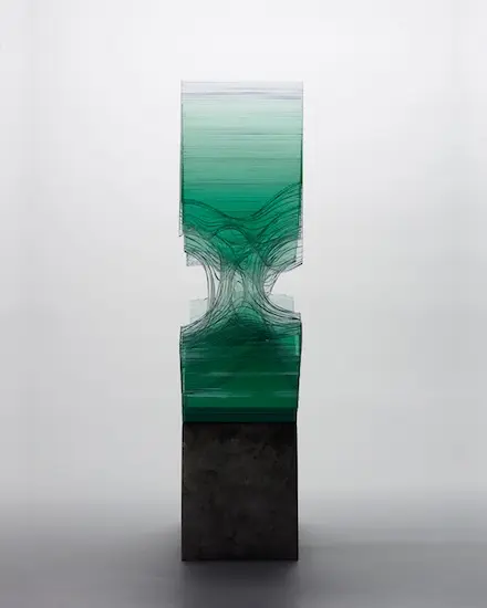 Chúng ta tiếp tục thưởng ngoạn các tác phẩm điêu khắc tuyệt vời với chất liệu chủ yếu là các tấm kính màu xanh trong suốt