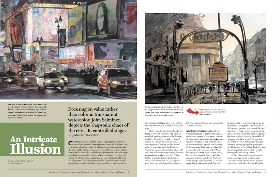 An Intricate Illusion: Focusing on value rather than color in transparent watercolor, John Salminen depicts the rhapsodic chaos of the city—in controlled stages.
