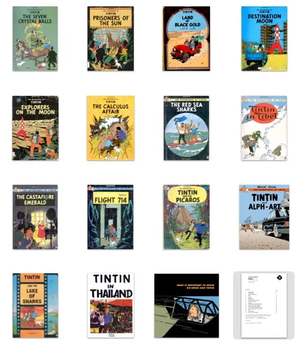 Tiếp theo là 25 quyển truyện tranh của thám tử trẻ Tin Tin, phiên bản tiếng Anh, mỗi truyện là một vụ phá án hay một chuyến phiêu lưu, mạo hiểm.