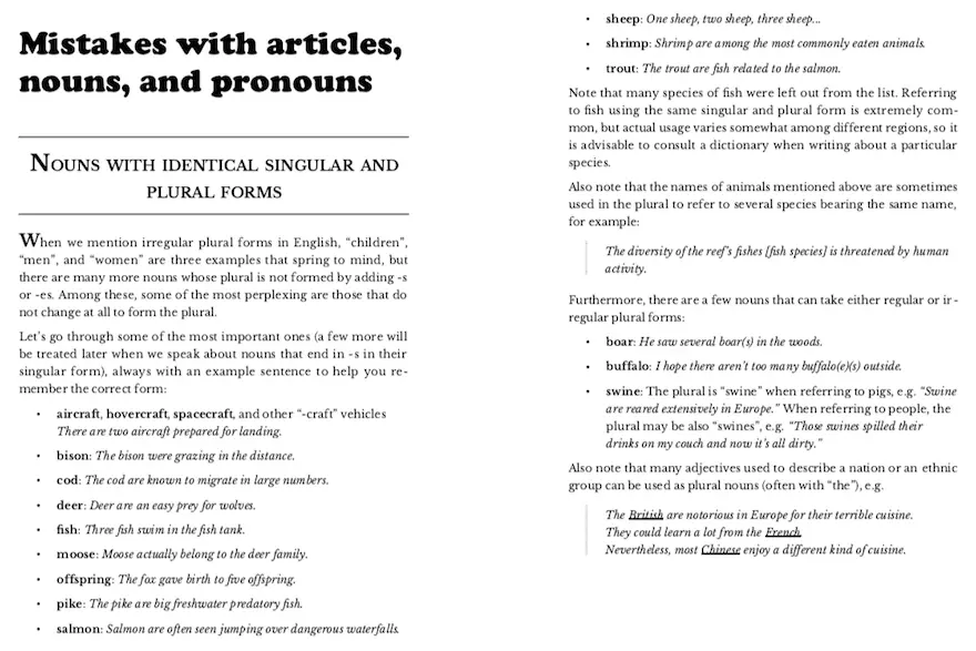 Foreword Introduction Mistakes with articles, nouns, and pronouns- Nouns with identical singular and plural forms
