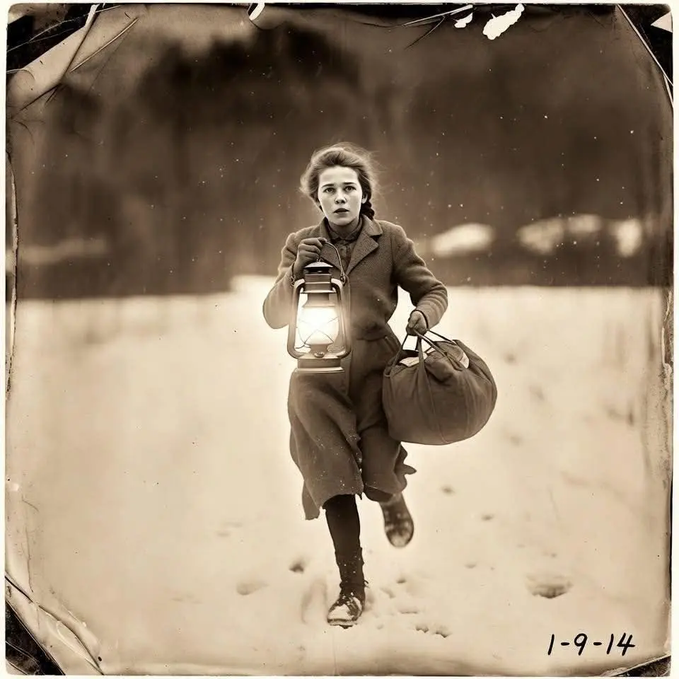 Bức ảnh chụp Sarah trong lúc cô bé chạy qua tuyết, mang theo chiếc túi hộ sinh một tay và ngọn đèn lồng tay kia, khuôn mặt của cô vừa đầy quyết tâm lại vừa sợ hãi. Xung quanh là đêm đông lạnh lẽo, ba dặm đường tuyết phía trước, nơi cô phải đến để thực hiện một công việc vô cùng khó khăn. Cô không chỉ phải nhớ lại những bài học mà mẹ đã dạy, mà còn phải cầu nguyện rằng ca sinh sẽ diễn ra suôn sẻ, vì những ca sinh phức tạp vượt quá khả năng của cô khi không có sự hỗ trợ của người lớn.
