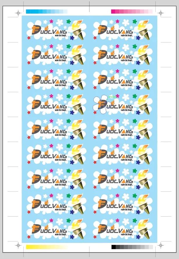 Hoàn tất khâu bình trang, bản bình trang cuối cùng bao gồm 18 con, 4 bon chồng màu, 4 dãy màu CMYK và đầy đủ bon cắt trên khổ A4 như dưới đây.