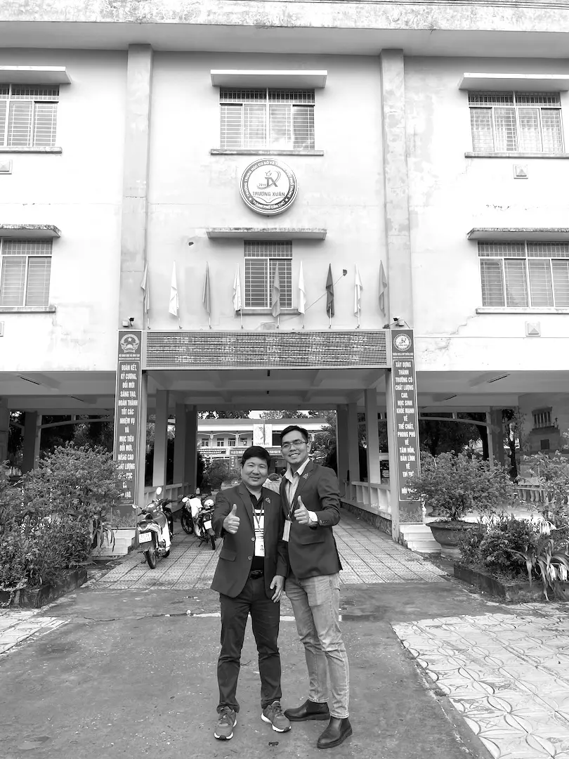 Trường cách nhà nghỉ khoảng 5 km nên chúng tôi đã hỏi mướn xe chạy, nhưng các thầy trực tiếp chở chúng tôi đến trường bằng xe máy. Đường đến trường là con đường chạy dọc theo một con kênh lớn mang đậm hình ảnh sông nước miền tây. Một bên là nhà ở với hàng rào cây xanh còn bên kia là hàng cây Hoa Phượng trên bờ 1 con kênh lớn.