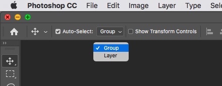 - Di chuyển cả group: chỉnh trên thanh công cụ Move tool , auto-select: group