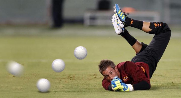 Kéo trái banh vào hình nền thủ môn đặt tên layer "ball", chúng ta có hình ghép sau