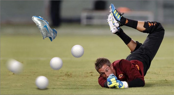 Bước 1: Ghép trái banh vào ảnh trên (thay vì là banh đá, mình dùng banh golf cho vui vui)