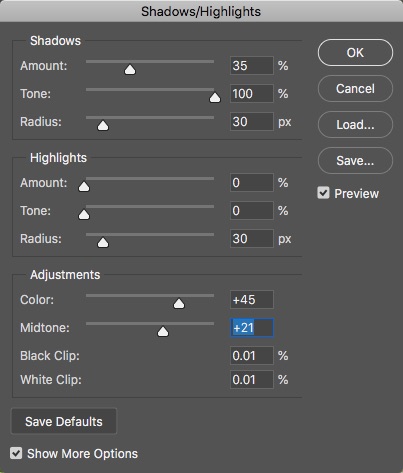 Sử dụng Image > Adjusments > Shadows/Highlights...