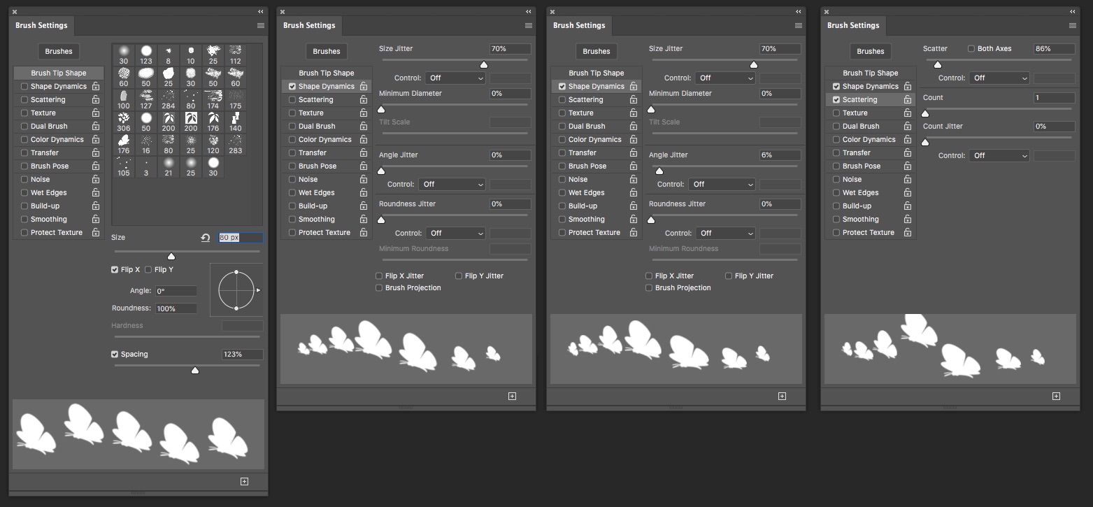 Thiết lập Brush Butterfly trong Brush Settings