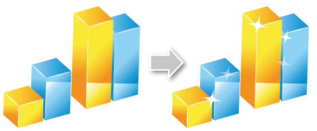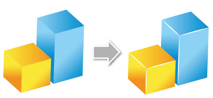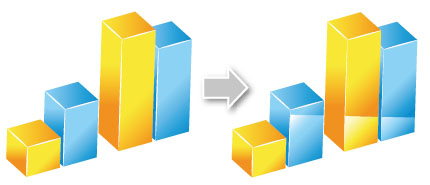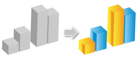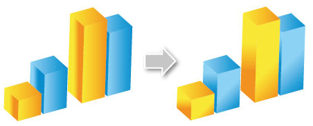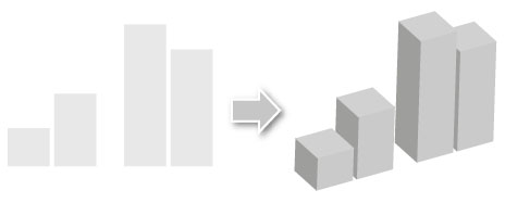 Trong Ai không có chức năng chuyển đồ thị phẳng sang dạng khối bằng chỉ vài cái click. Vì "3D hoá" phần cột và phần đồ thị khác nhau