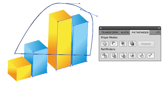 vẽ 1 hình có cạnh cắt chéo các khối cột. Dùng Direct Selection Tool