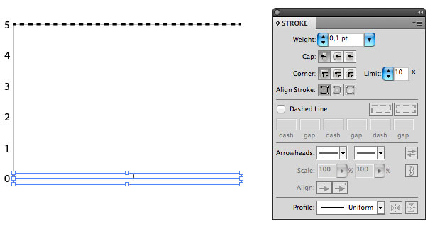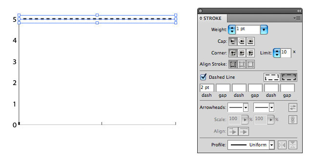 - Tăng độ dầy đường trên cùng lên 1 và chuyển thành dashed line (đường ngắt khúc) giá trị là 2