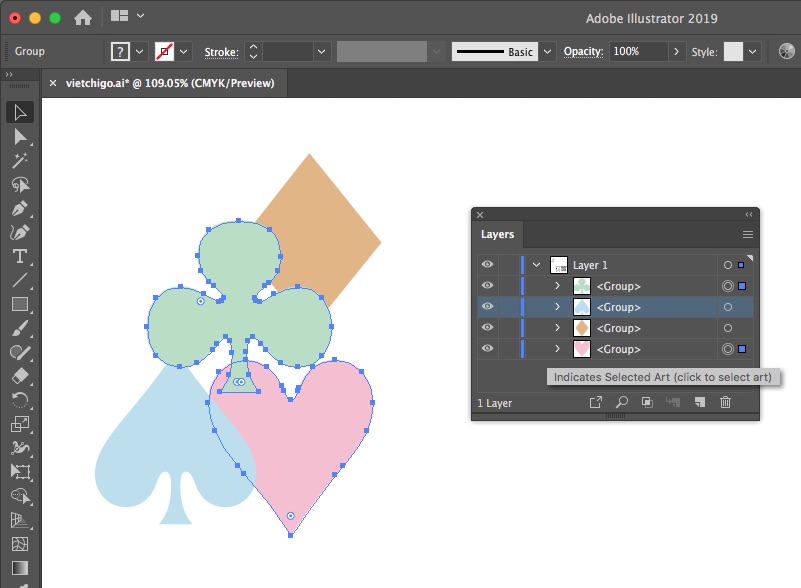 - Chọn tất cả đối tượng Select > Object > All On Same Layers.