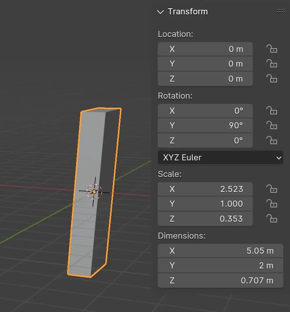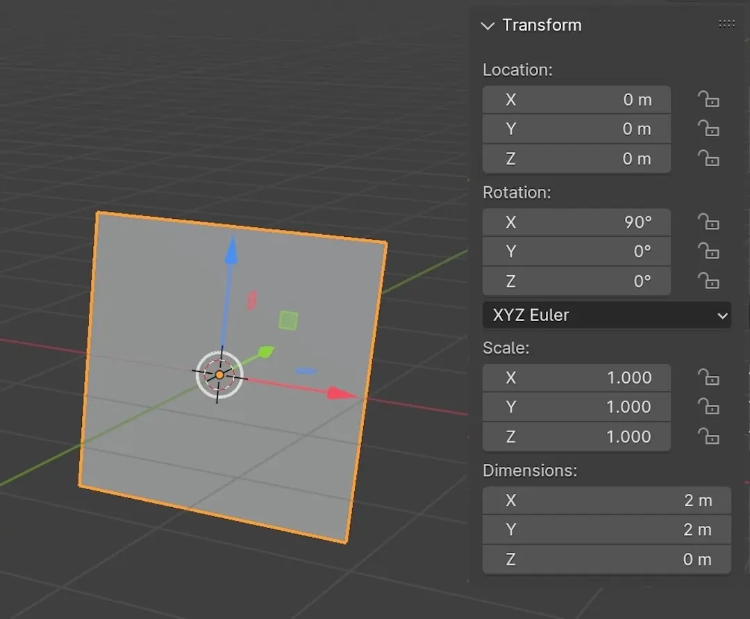 Sau khi rotate một plane thì kích thước tấm plane thể hiện trong sidebar bị lệch (thay vì Z thì nó lại là Y)