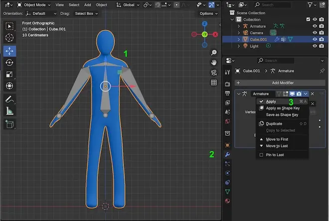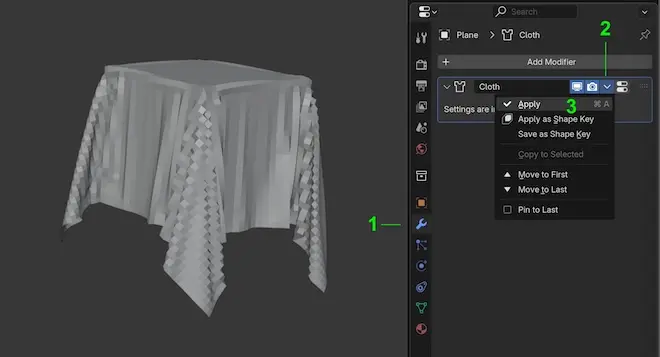 - Vào Modifier (trong cột Properties), nhấn Apply