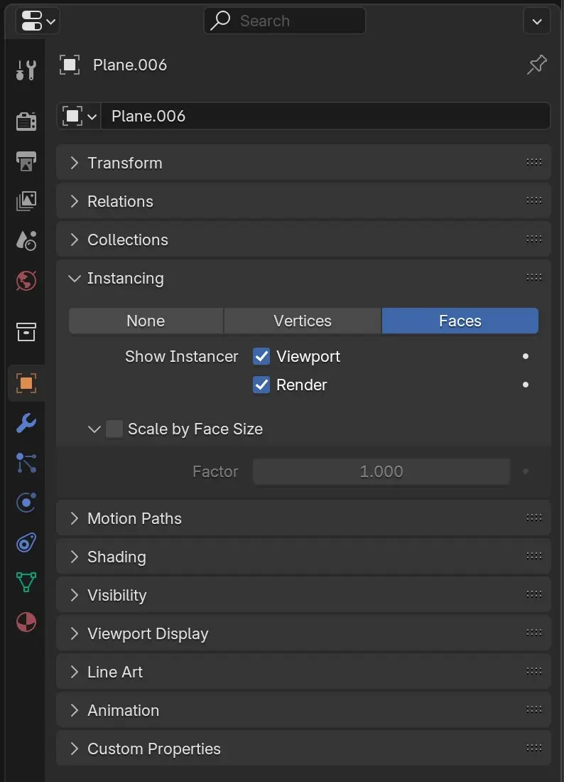 - Vàp Properties: Object > Instancing > Faces