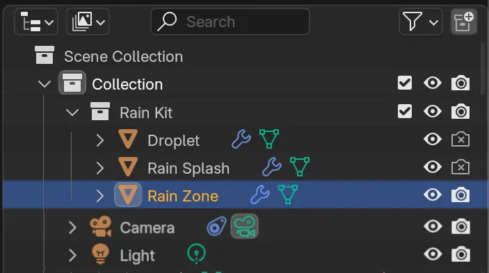 Để điều chỉnh, click chọn Rain zone và mở Modifier