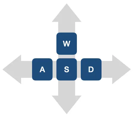 - W forward, S backward, D right side, A left side