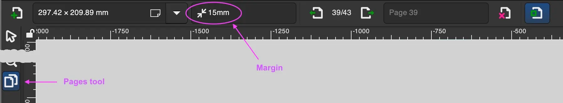 Margin trên thanh Tool Controls của Page tool