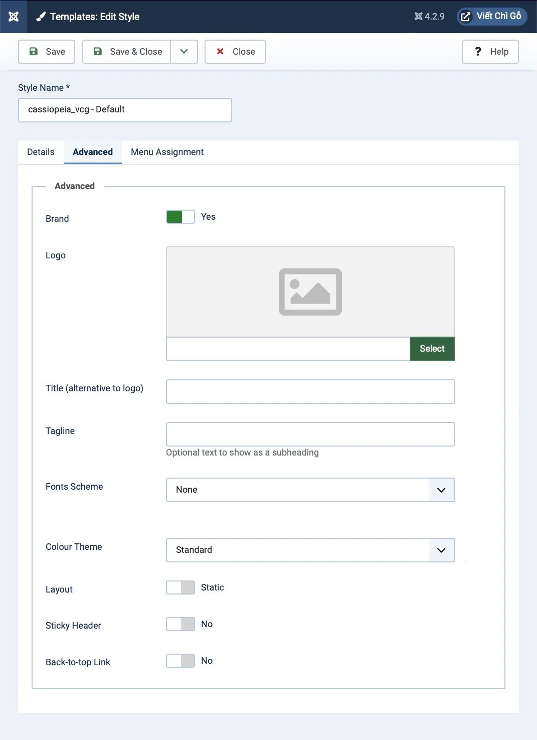 Cách tắt chữ cassiopeia trong template mặc định của Joomla
