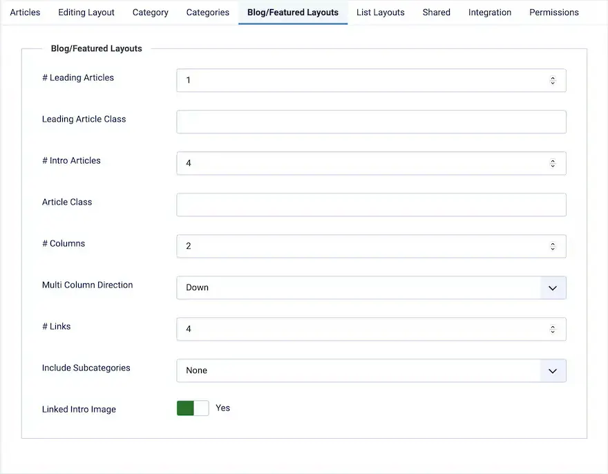 - System > Articles (options)
