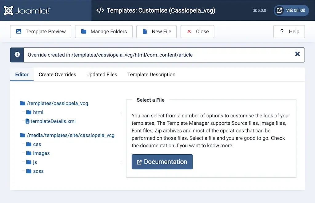 Trong Template: Customise, bạn có thể chỉnh sửa code trực tiếp lên file gốc hoặc chỉnh sửa Overrides