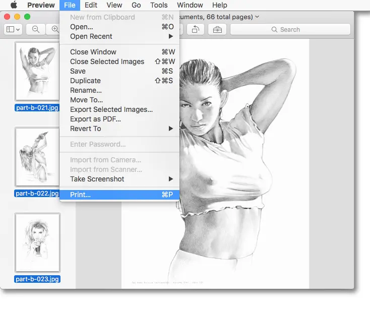 Bước 2: Trong Preview, click chọn File > Print... ( ⌘ P )
