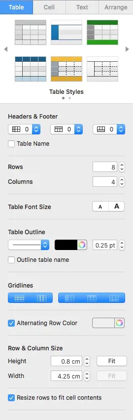 Bỏ kiểm Alternating Row Color ở cột bên phải