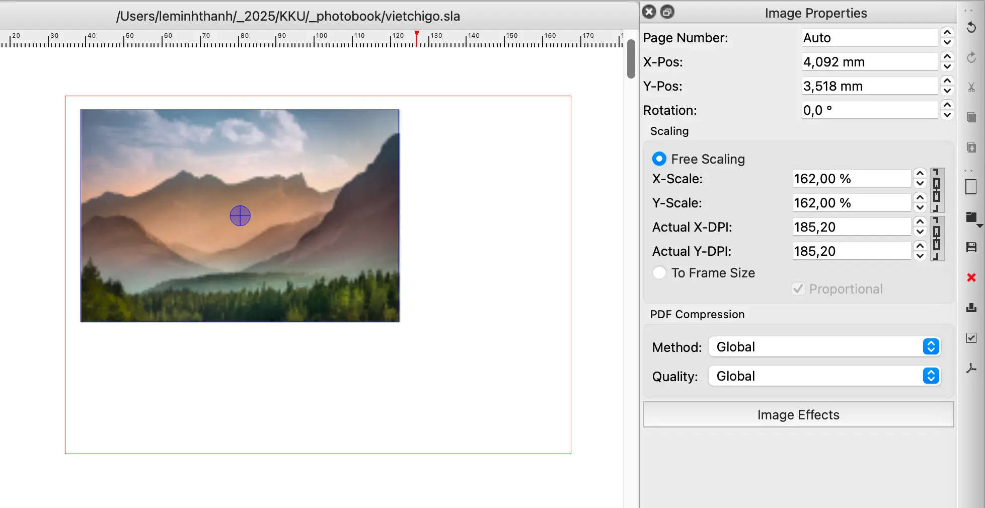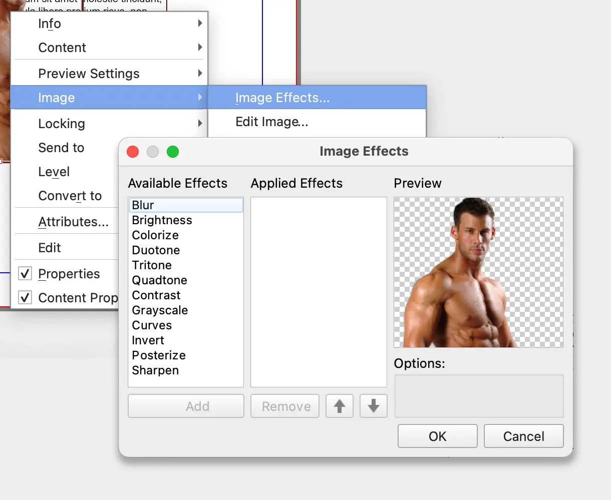Trong scribus có khá nhiều hiệu ứng dành cho ảnh raster